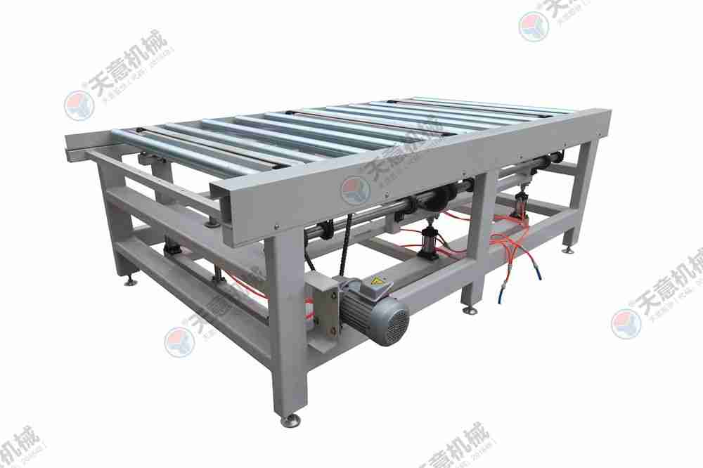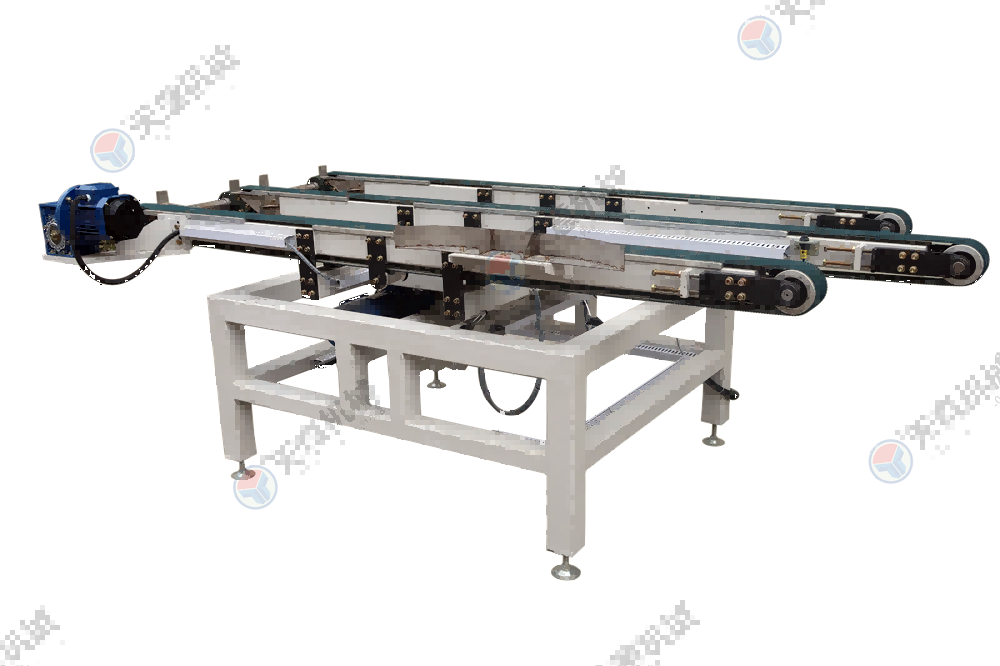 適用于背涂膠硅酸鈣板、水泥纖維板、玻鎂板等進(jìn)行流水作業(yè)時(shí)的工件輸送。采用尼龍輪輸送,既能減少與膠面的接觸面積還能保證板材的平穩(wěn)輸送。