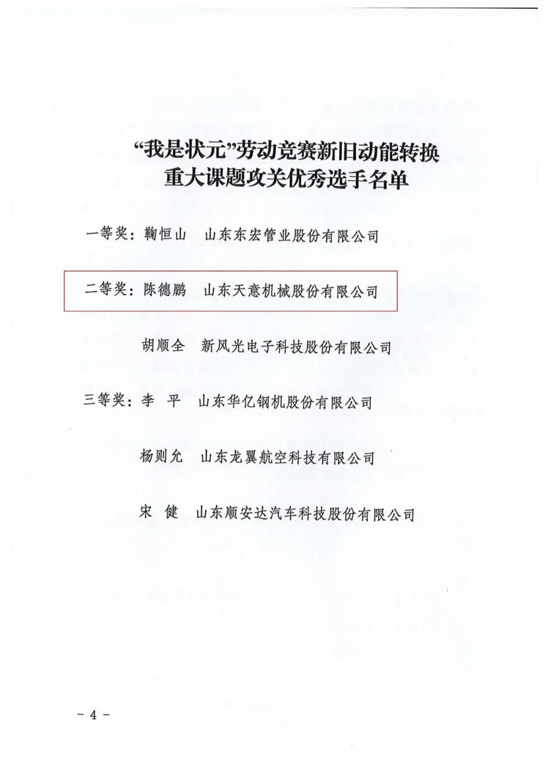 我司陳德鵬獲得濟(jì)寧市“我是狀元”勞動(dòng)競賽新舊動(dòng)能轉(zhuǎn)換重大課題攻關(guān)競賽單元二等獎(jiǎng)