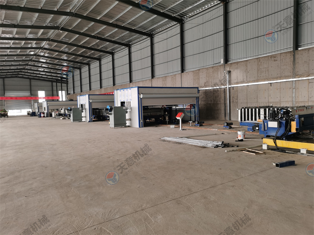 10.墻板機雙向開合,采用卯榫工藝焊接,確保大板焊接厚度以至,大板經(jīng)四面刨銑,能保證生產(chǎn)線上的模車一至,以便于后期整體上成型,自動抽芯機,自動涂油機的安裝。