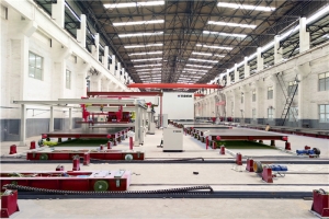 PC構(gòu)件生產(chǎn)流水線采用現(xiàn)代工業(yè)做法,工作模臺流轉(zhuǎn)作業(yè),實(shí)現(xiàn)住宅預(yù)制構(gòu)件批量生產(chǎn),將傳統(tǒng)現(xiàn)澆工地大量立體分散的工作,轉(zhuǎn)移至工廠,大幅提高了功效,同時(shí)大量節(jié)省人工。